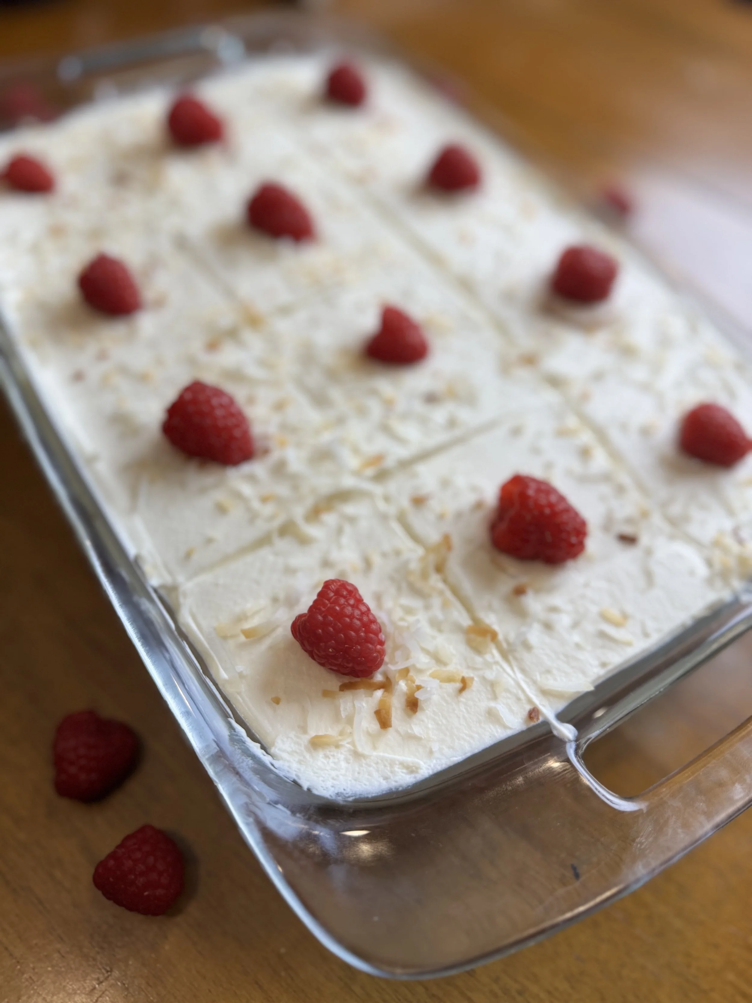 Coconut Raspberry Tres Leches Cake
